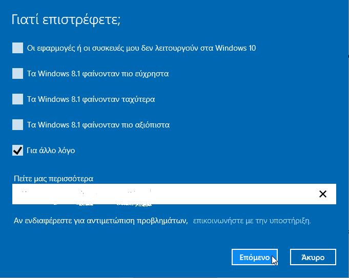 Η Microsoft θέλει να ξέρει για ποιο λόγο θέλουμε την απεγκατάσταση Windows 10.